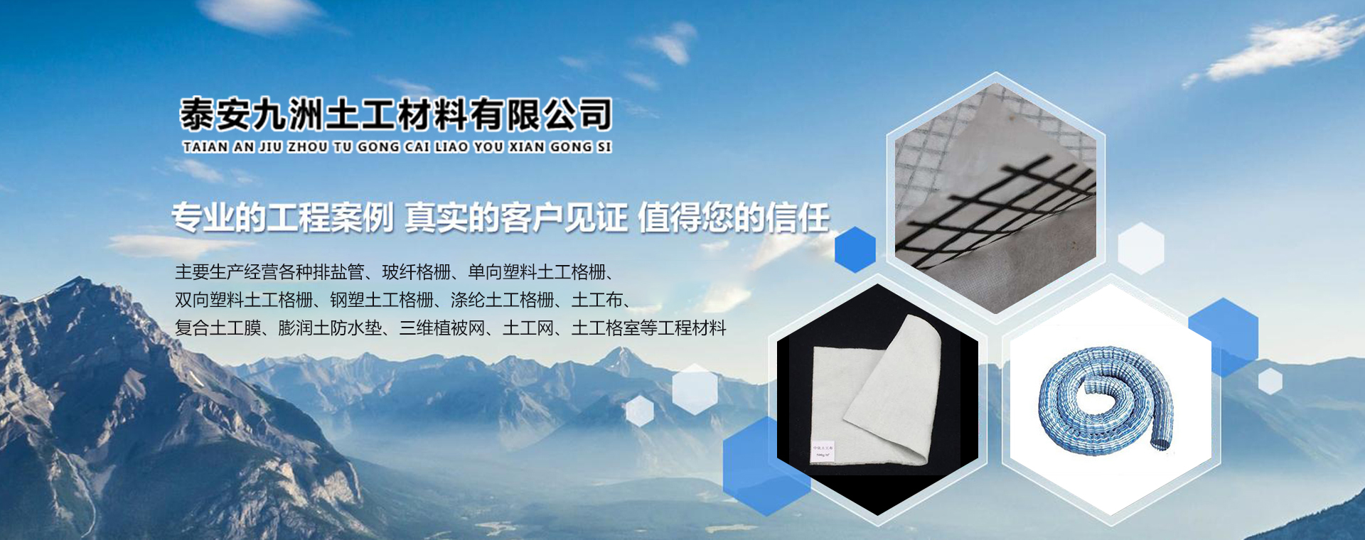 泰安九洲土工材料有限公司 泰安九洲土工材料有限公司位于馳名中外的“泰山”腳下——泰安高新技術(shù)開發(fā)區(qū),周邊風(fēng)景秀麗,環(huán)境優(yōu)雅,西距旅游勝地泰山10公里,南距文化名城孔府(曲阜)70公里,東距萊蕪40公里,北距省城濟(jì)南國際機(jī)場80公里,交通便利,京滬高速路、泰萊一級(jí)高速路,老泰萊路和泰新路橫穿東西,文化路和崗羊路縱貫?zāi)媳薄?公...